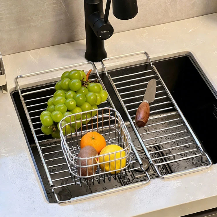 3. Тимчасове зберігання:Під час приготування ви можете помістити в кошик нарізані інгредієнти, миски з інгредієнтами для приготування тощо. Використовуйте простір над раковиною для тимчасового зберігання, заощаджуючи місце на стільниці.