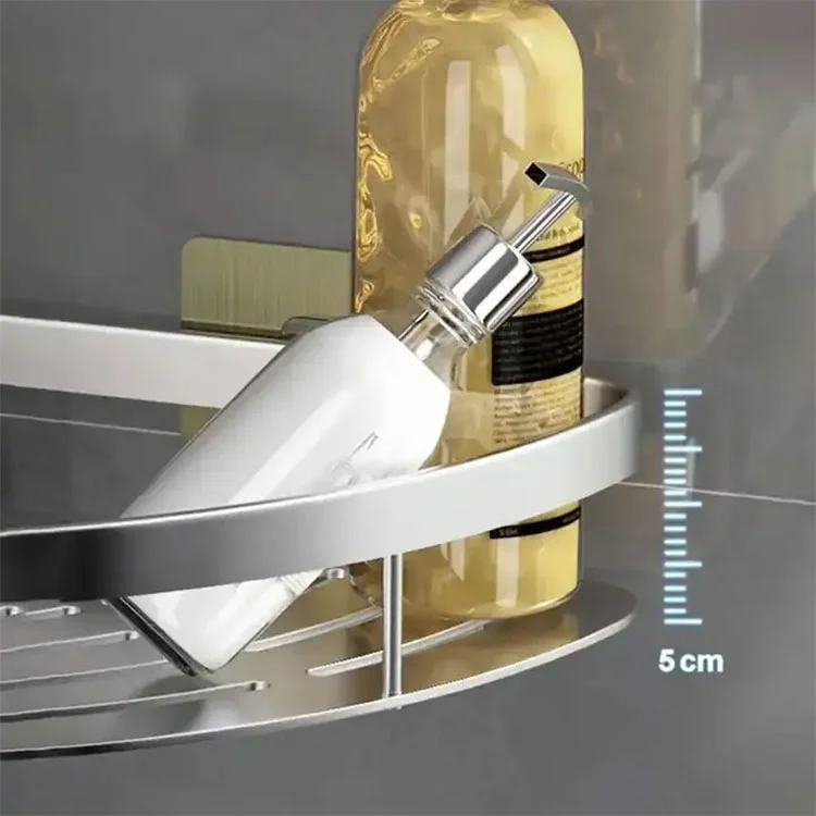 A: Виготовлений з високоякісної нержавіючої сталі 304 і має стабільну трикутну структуру, він може витримати вагу 5-10 кілограмів. Ця полиця для ванної кімнати з нержавіючої сталі ідеально підходить для розміщення засобів для ванн, пляшок з соусом тощо.
